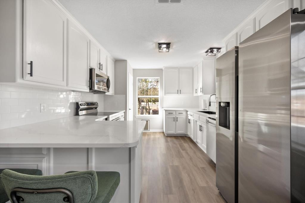 Welcome to 1301 County Road 705, a stunning, move-in-ready home nestled on 1 peaceful acre in Joshua, Texas. This remodeled 3 bedroom, 2 bath residence offers 1,756 square feet of modern comfort and country charm. Step inside to discover a bright, open layout with all new finishes throughout. Fresh paint, new flooring, doors, hardware, ceiling fans, and stylish light fixtures. The kitchen shines with brand-new countertops, a classic subway tile backsplash, new appliances, and updated cabinetry. Both bathrooms feature new vanities and contemporary fixtures, creating a clean and inviting feel in every space. Outside, you’ll love the updates just as much, including fresh exterior paint, a new concrete slab with an extended awning, and a durable metal roof. The property also includes an impressive 30×40 workshop, complete with two large bay doors and full electric service, perfect for projects, RV parking, storage, or hobbies. The split bedroom design provides privacy for the primary suite, while the open concept living and dining areas make this home perfect for family gatherings or entertaining friends. Enjoy quiet country living just minutes from town with plenty of room to spread out, work, and play.