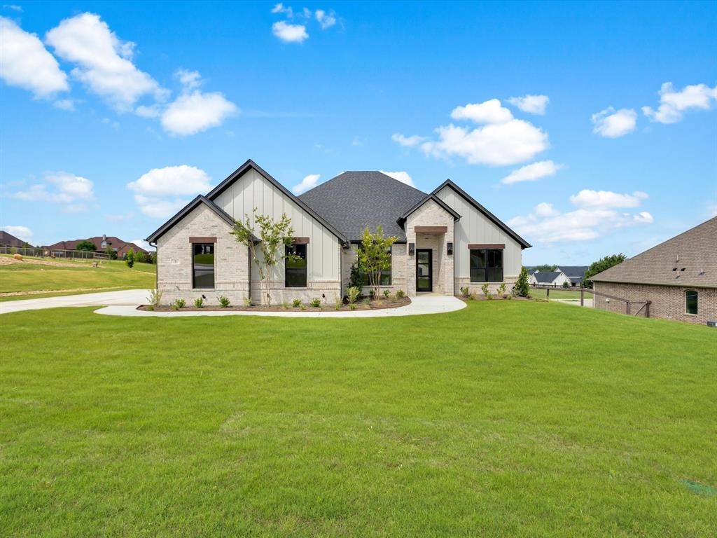 Welcome to your dream home, masterfully built by Ryco Homes and nestled on a spacious 1-acre lot in the highly sought-after, gated community of Rolling Creek Ranch. Step into a light-filled open floor plan featuring soaring ceilings, wood-look tile flooring, extensive crown molding, and an impressive floor-to-ceiling brick fireplace framed by rich wood beams, setting the tone for warmth and elegance. The heart of the home is this one-of-a-kind chef’s kitchen. Designed to impress and built to function, it features two oversized islands, a custom vent hood, ceiling-height cabinetry, and a massive walk-in pantry with storage galore. Whether you’re hosting brunch or baking with the kids, this kitchen makes it effortless and unforgettable. The luxurious owner’s suite is a true escape. Get ready in style with dual vanities and multiple counter spaces—no more fighting for elbow room. Unwind in the extended walk-in shower with dual shower heads, or soak the day away in the freestanding tub. The walk-in closet is a showstopper, complete with seasonal rods, built-in shelving, an island with storage, and even a full-length dressing mirror that feels like your own private boutique. A private office off the foyer and a separate game room overlooking the lush, green backyard. The split bedroom layout provides maximum privacy, and the oversized laundry room is equipped with ample counter space to make folding feel less like a chore. The covered back patio is perfect for entertaining, relaxing, and soaking in the views. With a full acre to enjoy, there’s plenty of space to add a pool, shop, or anything else your heart desires. Additional features include an epoxy-finished garage, custom mud bench, and natural light throughout every corner. Enjoy Rolling Creek Ranch amenities, including a pickleball and basketball court, a park, a catch-and-release fishing pond, and elevated hilltop views of beautiful Granbury. This is the lifestyle upgrade you’ve been waiting for.