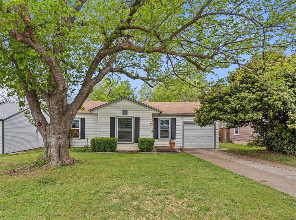 A one-car garage provides parking, while the extended driveway offers extra space. Step outside to enjoy a spacious, fenced backyard—ideal for outdoor activities, entertaining, or simply relaxing in privacy. A mature tree in the front yard offers shade, making it a great spot to unwind.
