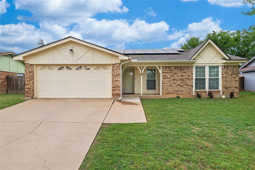 Wow, do not miss out on this outstanding home, all you have to do is turn the key and move in. Our split primary bedroom offers loads of floor space and an a updated ensuite bath, updated stand alone shower, updated vanity and updated flooring. Our inviting den is accented by a brick fireplace, porcelain floors and is perfect for entertaining or just relaxing. Our kitchen offers abundant counter and storage space, a full compliment of appliances and a breakfast nook with bay window over looking the back yard. Our split kids bedroom offer plenty of floor space and walk-in closets. Our backyard offers plenty of room for kids and your four legged friends. Updates include windows, HVAC, flooring, light fixtures, baths and a roof less than 30 days old. Solar system is paid for and passes to the new owner.