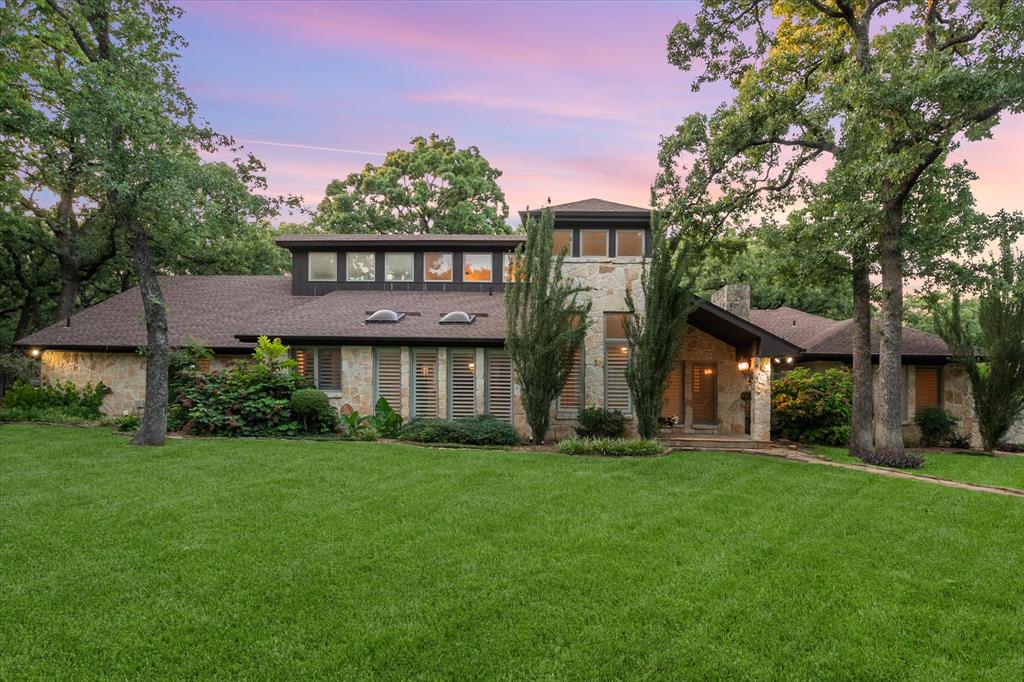 Experience luxury living on 5 serene, tree-lined acres in the coveted Woodlands Addition of Mansfield. This architecturally striking home offers over 4,200 square feet of refined living space all on one level featuring 4 spacious bedrooms – each with its own ensuite bath – providing ultimate privacy and comfort. The beautifully updated kitchen boasts granite counters, an expansive island, custom cabinetry and seamless flow into multiple living and dining areas, all flooded with natural light.